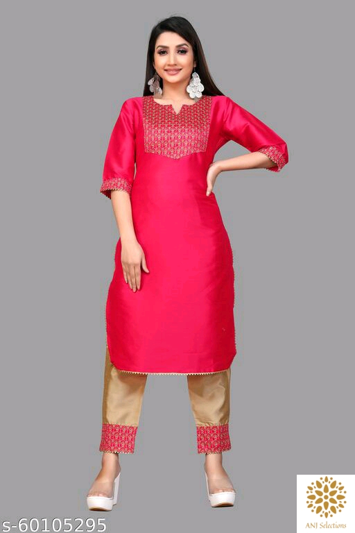 Rs.650.00 Whatsapp -> https://ltl.sh/7EQLe582 Catalog Bottomwear Fabric: Silk Fabric: Silk Sleeve Length: Three-Quarter Sleeves Set Type: Kurta With Bottomwear Bottom Type: Pants Pattern: Self-Design,Embroidered Multipack: Single Sizes: S (Bust Size: 36 in, Shoulder Size: 14 in, Kurta Waist Size: 34 in, Kurta Hip Size: 38 in, Bottom Waist Size: 28 in, Bottom Hip Size: 38 in) M (Bust Size: 38 in, Shoulder Size: 14.5 in, Kurta Waist Size: 36 in, Kurta Hip Size: 40 in, Bottom Waist Size: 30 in, Bottom Hip Size: 40 in) L (Bust Size: 40 in, Shoulder Size: 15 in, Kurta Waist Size: 38 in, Kurta Hip Size: 42 in, Bottom Waist Size: 32 in, Bottom Hip Size: 42 in) XL (Bust Size: 42 in, Shoulder Size: 15.5 in, Kurta Waist Size: 40 in, Kurta Hip Size: 44 in, Bottom Waist Size: 34 in, Bottom Hip Size: 44 in) XXL (Bust Size: 44 in, Shoulder Size: 16 in, Kurta Waist Size: 42 in, Kurta Hip Size: 46 in, Bottom Waist Size: 36 in, Bottom Hip Size: 46 in) Easy Returns Available In Case Of Any Issue *Proof of Safe Delivery! Click to know on Safety Standards of Delivery Partners- https://ltl.sh/y_nZrAV3
