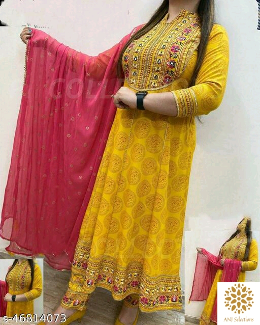 Rs.999.00 Whatsapp -> https://ltl.sh/7D15LJmN Catalog Fabric: Rayon Bottomwear Fabric: Rayon Sleeve Length: Three-Quarter Sleeves Pattern: Printed Set Type: Kurta with Dupatta and Bottomwear Stitch Type: Unstitched Multipack: Single Sizes: S, M (Bust Size: 38 in, Bottom Waist Size: 30 in, Bottom Length Size: 38 in, Shoulder Size: 14.5 in) L (Bust Size: 40 in, Bottom Waist Size: 32 in, Bottom Length Size: 38 in, Shoulder Size: 15 in) XL (Bust Size: 42 in, Bottom Waist Size: 34 in, Bottom Length Size: 38 in, Shoulder Size: 15.5 in) XXL (Bust Size: 44 in, Bottom Waist Size: 36 in, Bottom Length Size: 38 in, Shoulder Size: 16 in) XXXL (Bust Size: 46 m, Bottom Waist Size: 38 m, Bottom Length Size: 38 m, Shoulder Size: 16.5 m) Dispatch: 2-3 Days Easy Returns Available In Case Of Any Issue *Proof of Safe Delivery! Click to know on Safety Standards of Delivery Partners- https://ltl.sh/y_nZrAV3