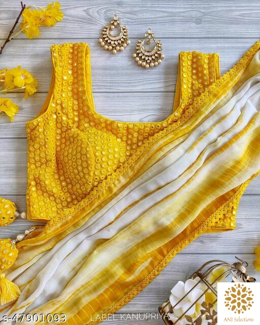 Rs.1300.00 Whatsapp -> https://ltl.sh/zDmraPXg Catalog Blouse: Product Dependent Blouse Fabric: Georgette Pattern: Product Dependent Blouse Pattern: Embroidered Multipack: Single Sizes: Free Size (Saree Length Size: 5.5 m, Blouse Length Size: 0.8 m) Dispatch: 2-3 Days Easy Returns Available In Case Of Any Issue *Proof of Safe Delivery! Click to know on Safety Standards of Delivery Partners- https://ltl.sh/y_nZrAV3