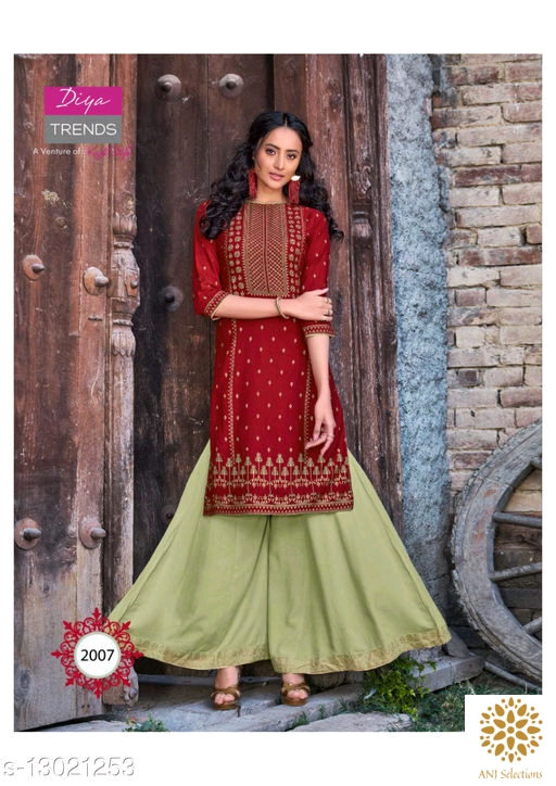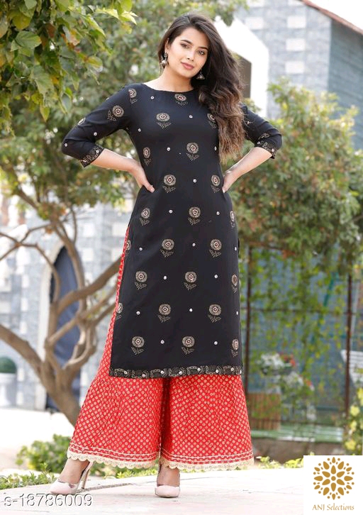 Rs.900.00 Whatsapp -> https://ltl.sh/7BeKtHZB Catalog Bottomwear Fabric: Rayon Fabric: No Dupatta Sleeve Length: Three-Quarter Sleeves Set Type: Kurta With Bottomwear Bottom Type: Sharara,Skirt Pattern: Printed,Embroidered Multipack: Single Sizes: M (Bust Size: 38 in, Shoulder Size: 15 in, Kurta Waist Size: 34 in, Kurta Hip Size: 36 in, Kurta Length Size: 45 in, Bottom Waist Size: 34 in, Bottom Hip Size: 36 in, Bottom Length Size: 38 in) L (Bust Size: 40 in, Shoulder Size: 15.5 in, Kurta Waist Size: 36 in, Kurta Hip Size: 38 in, Kurta Length Size: 45 in, Bottom Waist Size: 36 in, Bottom Hip Size: 38 in, Bottom Length Size: 38 in) XL (Bust Size: 42 in, Shoulder Size: 16 in, Kurta Waist Size: 38 in, Kurta Hip Size: 40 in, Kurta Length Size: 45 in, Bottom Waist Size: 38 in, Bottom Hip Size: 40 in, Bottom Length Size: 38 in) XXL (Bust Size: 44 in, Shoulder Size: 16.5 in, Kurta Waist Size: 40 in, Kurta Hip Size: 42 in, Kurta Length Size: 45 in, Bottom Waist Size: 40 in, Bottom Hip Size: 42 in, Bottom Length Size: 38 in) Easy Returns Available In Case Of Any Issue *Proof of Safe Delivery! Click to know on Safety Standards of Delivery Partners- https://ltl.sh/y_nZrAV3